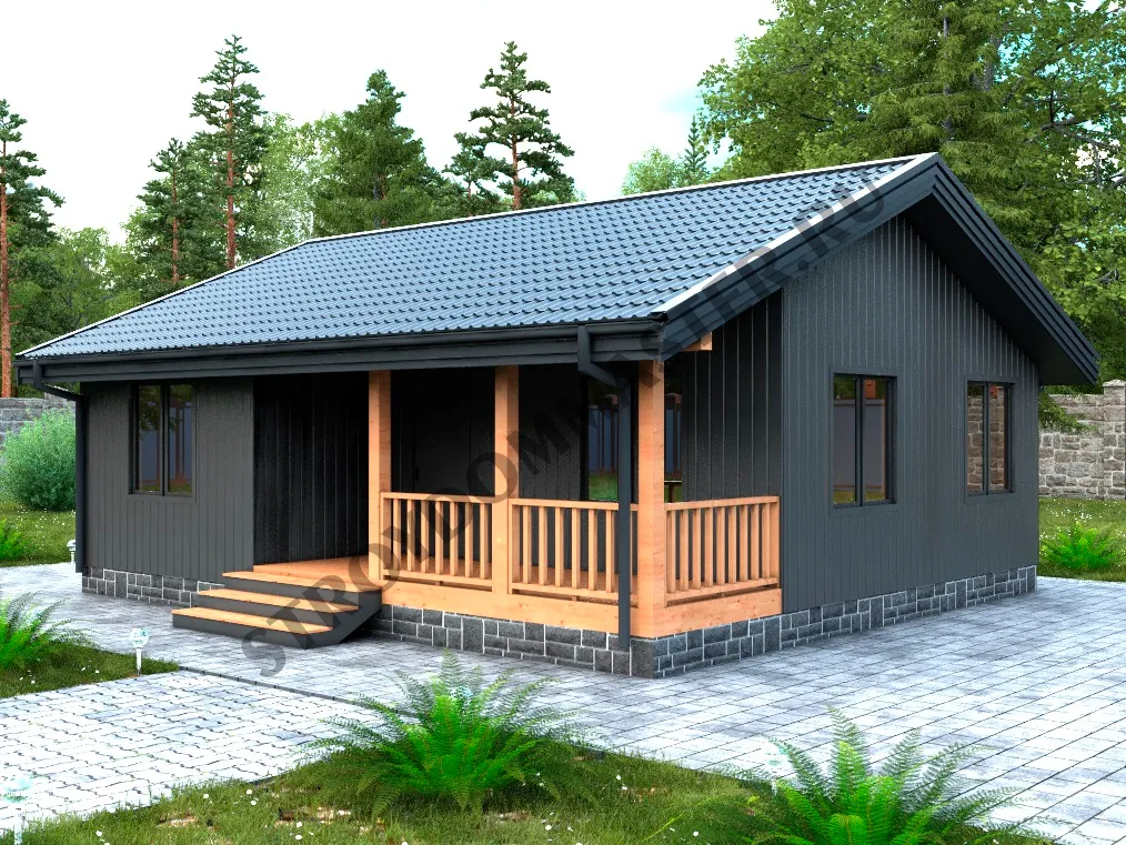 Одноэтажный каркасный дом ЕЛЛИНГ 8х9 общ.72м2 жил. 48м2 в Скандинавском стиле,толщина Энергосберегающего пакета (ЭСП) 150мм. или 200мм. в нём будет тепло Зимой и комфортно летом. Такой дом построим «Под Ключ» с отделкой внутри за 45 дней, коммуникациями за 60 дней: