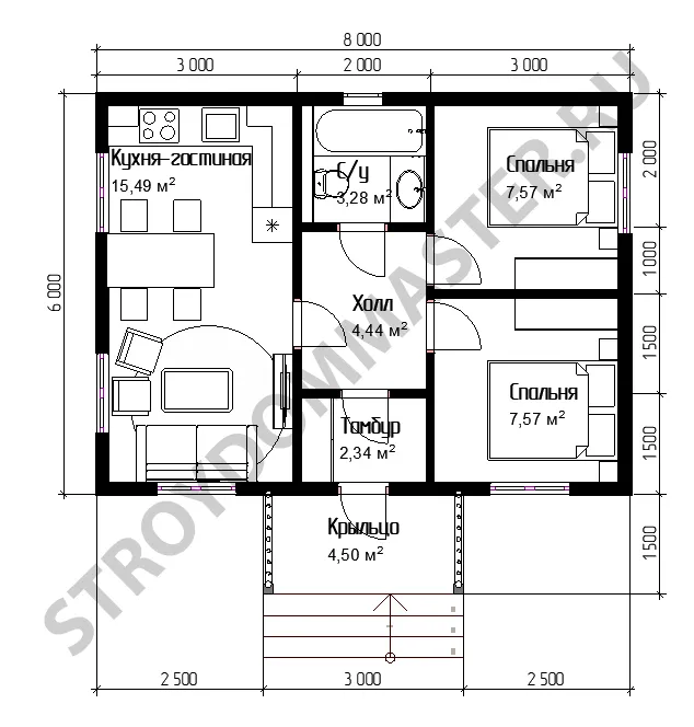 Общая площадь: 52 м/кв